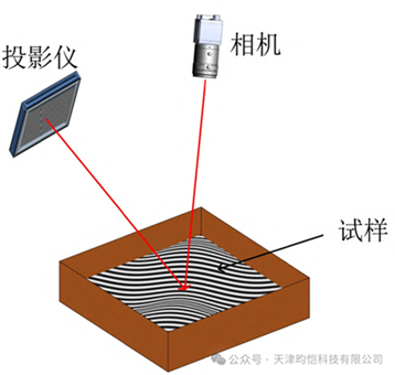 条纹投影法:条纹投影法通过条纹图案的调制来获取物体表面的形貌信息,设备结构如下图所示。